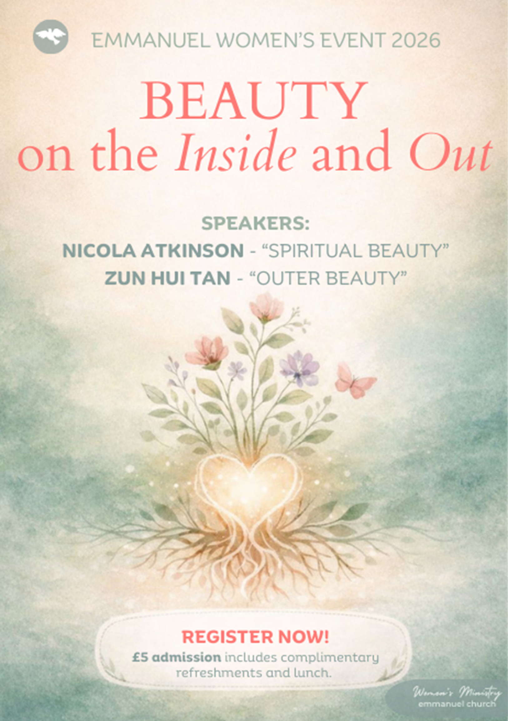At this event, we will be exploring God's design for women, looking at what it means to have spiritual beauty on the inside as well as being beautiful on the outside.